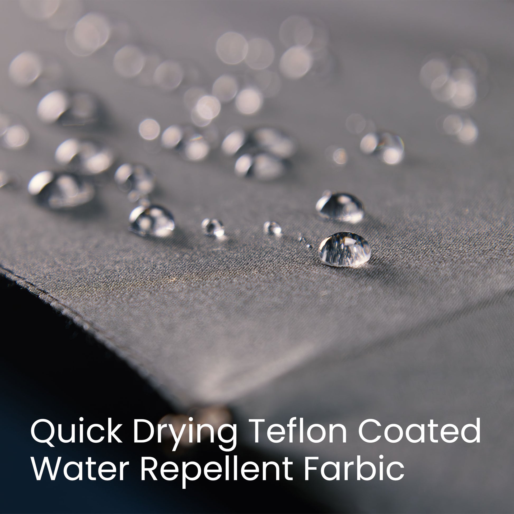 - Fully water repellent thanks to its teflon coated technology, watch the water bead off and instantly dry.