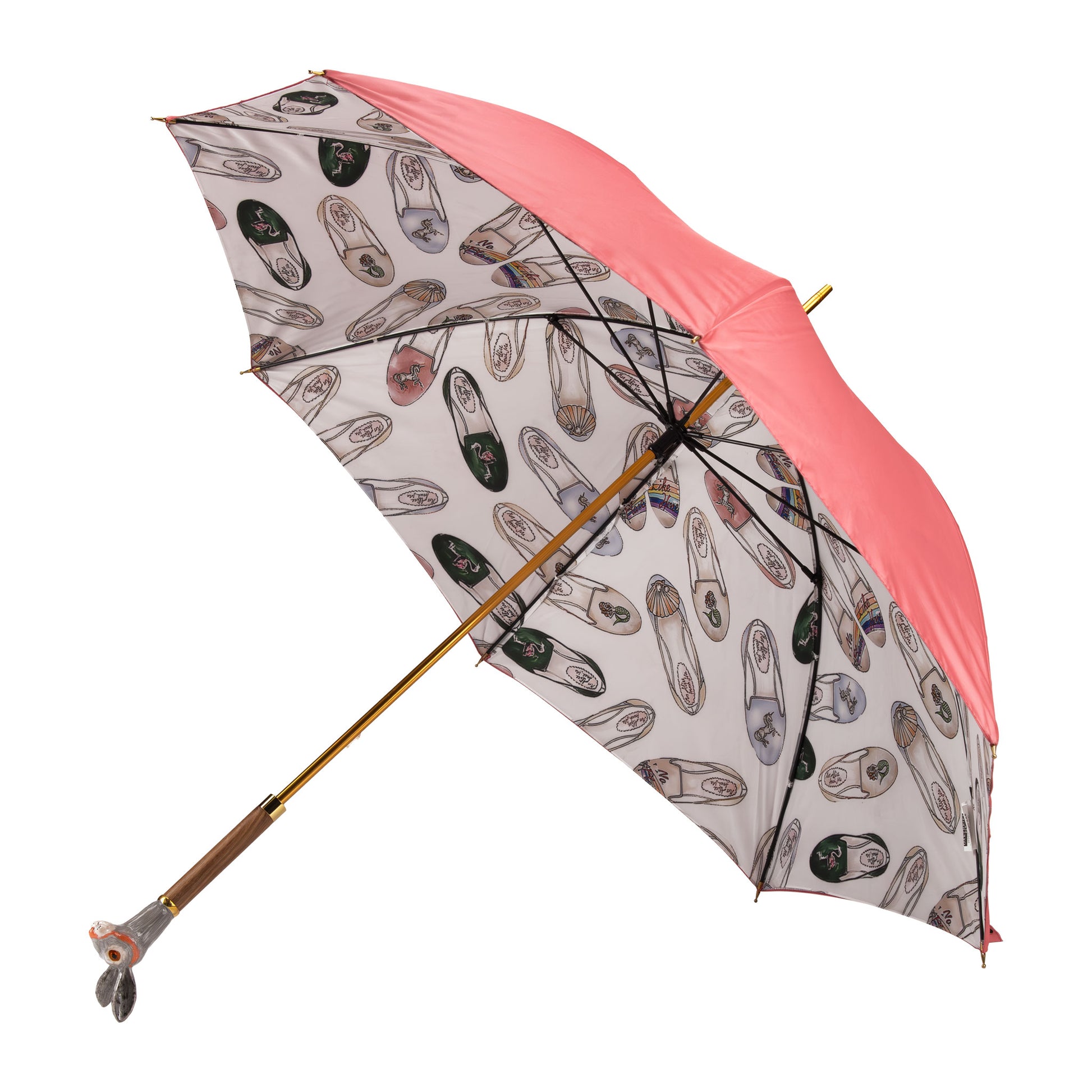 Roamwild French Sole roze dubbele luifelparaplu met handvat in de vorm van een konijnenkop